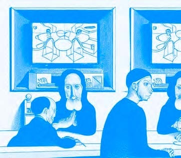 It’s Tuesday afternoon, and I am sitting in a crowded bar that does not serve alcohol. My bartender, an endomorphic soyjak in a polo shirt with a chin strap, has been ignoring me for 45 minutes. He sees to other customers with quirky small talk reminiscent of Joss Whedon dialogue—a self-referential, overly familiar parody of “arch.” My flight response screams “run,” my fight response screams “murder this man,” but neither is an option, so I dumbly wait. He is a “genius,” and my entire livelihood is staked on this chipper castrato.
